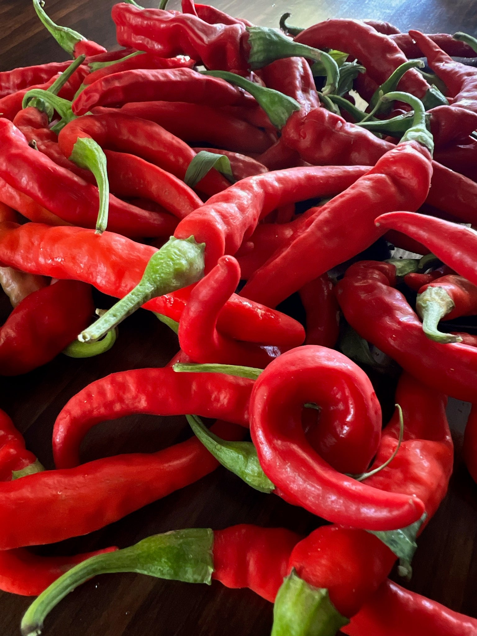These beautiful cayenne peppers pack quite a bit of heat! Grown by Mellowfields Farm.