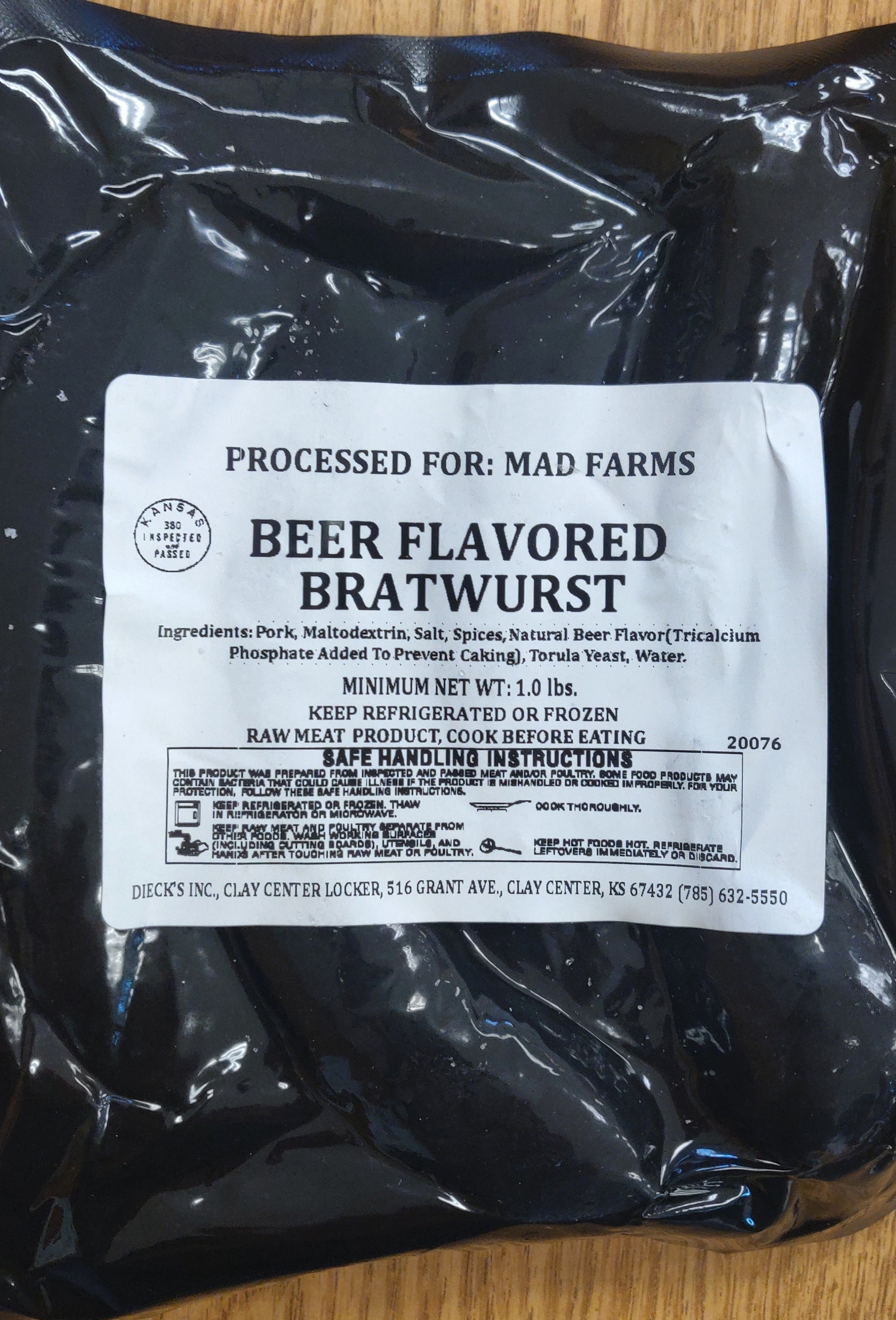 It's Oktoberfest any time of year with these beer-flavored bratwurst from M.A.D. Farms! Comes frozen in a package of 5 sausages (approximately 1 lb.).